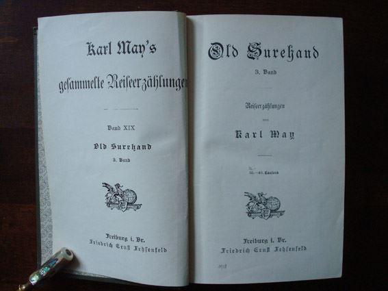 "Old Surehand III" ist der 3. Teil der 3-teiligen "Old Surehand" - Reihe und der 19. Band der gesammelten Reiseerzählungen Karl May's. Auf dem Einband ist die Verlagsbezeichnung "Verlag der Karl May - Stiftung Radebeul - Dresden" und auf dem Deckblatt "Freiburg i. Br. Friedrich Ernst Fehsenfeld" aufgeführt. Bei dem Buchblock handelt es sich um die Auflage: 35. - 40. Tausend. Der erste Radebeuler Buchblock erschien unter der Auflage: 48. - 52. Tausend mit der Verlagsbezeichnung "Verlag der Karl May - Stiftung Radebeul bei Dresden". Innerhalb dieser Auflage erschienen beide Einband-Aufdrucke: „Verlag der Karl May - Stiftung Radebeul - Dresden" und "Karl May Verlag Fehsenfeld & Co Radebeul - Dresden". Dies war zugleich die letzte Ausgabe unter dem Titel "Old Surehand III".