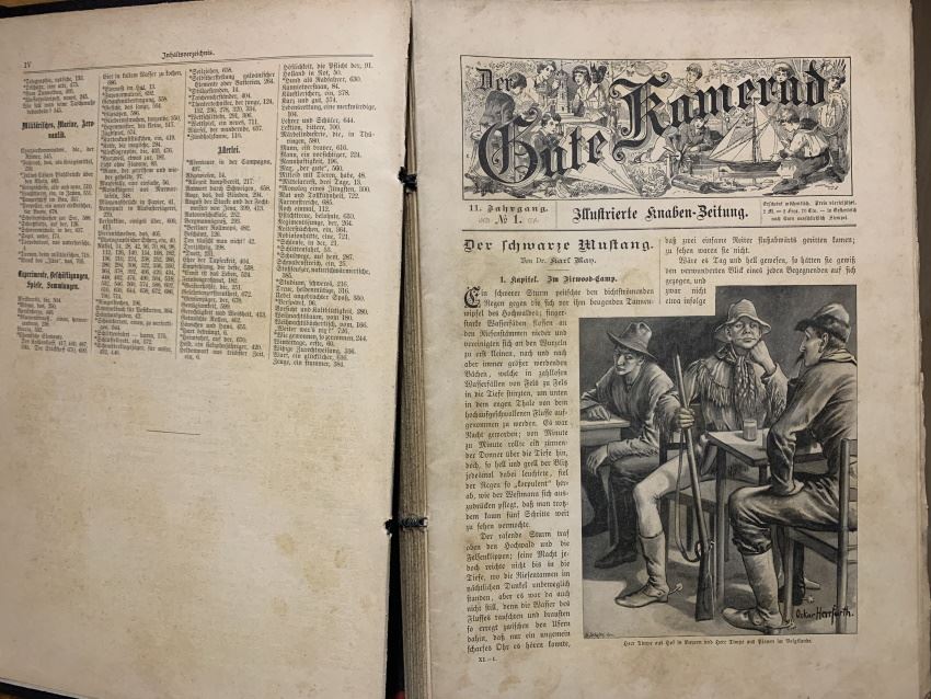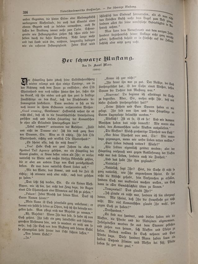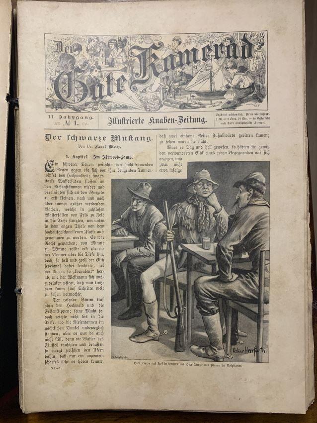 Bei der vorliegenden Ausgabe von "Der schwarze Mustang"" handelt es sich um die wirkliche Erstausgabe. Diese Erzählung erschien im 11. Jahrgang der Knabenzeitschrift "Der Gute Kamerad" in den Jahren 1896 und 1897. Der Jahrgang lief von Oktober bis September des nächsten Jahres und bestand aus 52 Ausgaben. "Der schwarze Mustang" wurde als Fortsetzung in den Heften 1 bis 28 abgedruckt.